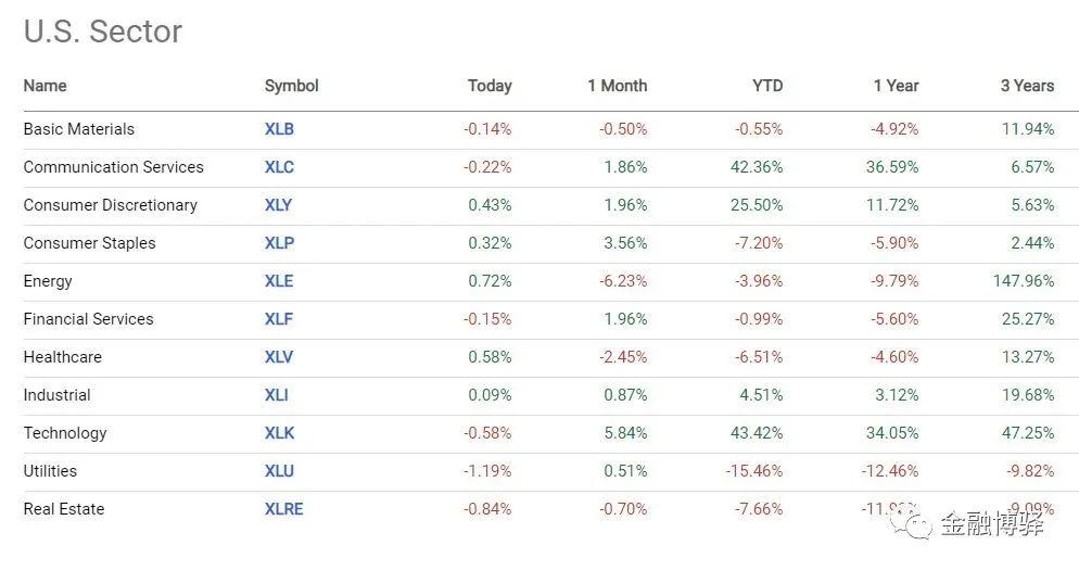 (1)美股板块涨跌幅