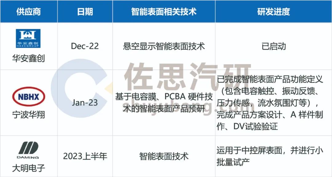 来源:佐思汽研《2023年汽车智能表面研究报告》