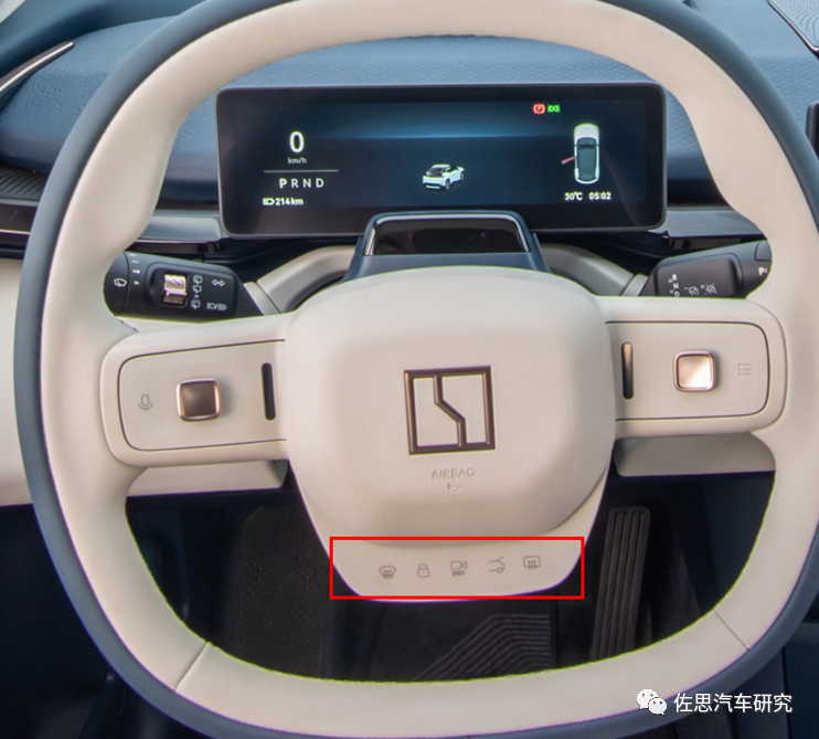 哪咤S方向盘的多功能按键区域采用悬浮式设计