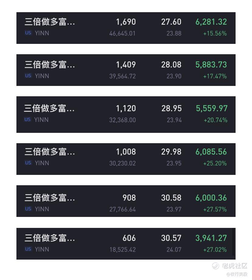 YINN 再次拿捏,这波血赚,恭喜各位👍 1.2倍杠杆分次建仓抄到最低24.6,满仓持有1个多月期间六七次CALL,PUT YINN次次翻倍(见我的帖子),正股极限亏损仅仅10%,毫无压力😄,YINN今年胜率90%以上。(下图1690股为账户1.2倍杠杆仓位,每次逢涨止盈1/5仓位,结合YINN期权盈利,总盈利大于1.5万刀。【还是老虎的界面舒服,操作也舒服,舒服了】