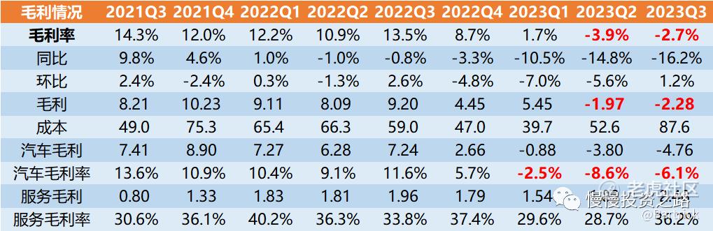 小鹏三季度实现毛利-2.28亿元,整体毛利率-2.7%,,汽车毛利率只有-6.1%,连续3个季度汽车毛利率是负数,虽然本季度车卖得相对不错,但是G6,新G9那么低的定价,毛利率起不来也正常了,四季度随着交付量的继续扩大,毛利率有望回正。