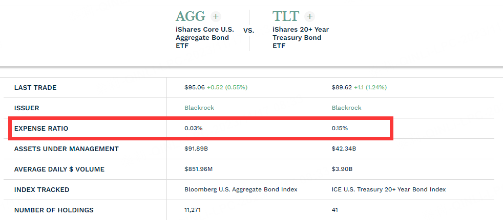 AGG:AGG的管理费率是0.03%。相较于TLT,AGG的管理费用较低。