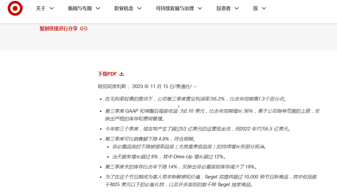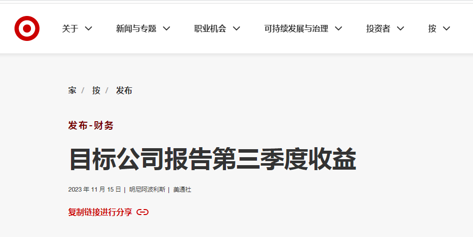 Target发布2023年第三季度财报 图源:Target