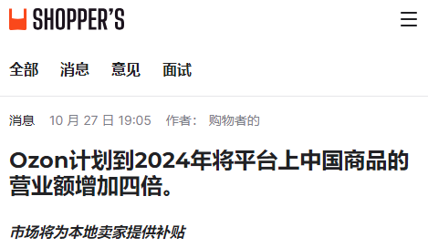 作为俄罗斯本土最大的综合类B2C电商平台之一,Ozon素来有着“俄罗斯亚马逊”之称。随着近一年来欧美电商在俄罗斯陆续退场,其在当地的影响力正不断上升。