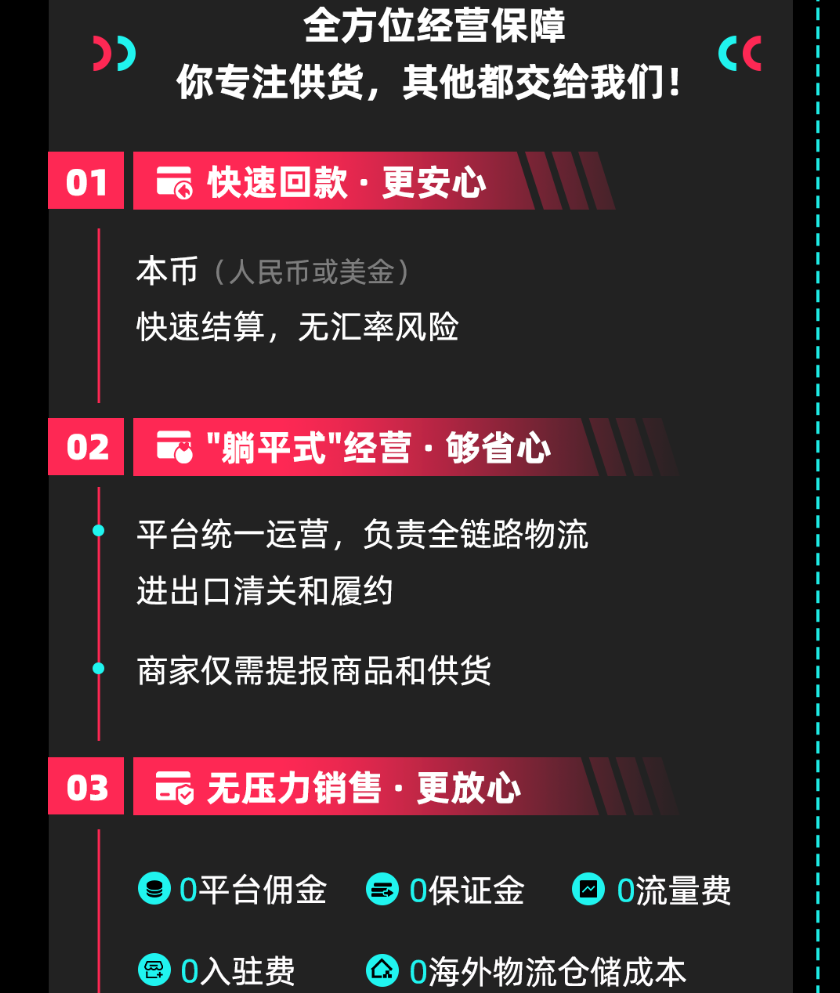 全托管模式何来如此大的力量?这是因为在全托管模式的支持下,卖家只需要负责货源和产品上架,而销售、物流、售后等环节则全部由TikTok Shop负责。如此一来,卖家就能够专注于做好产品研发和供应链管理,无需额外分心处理其他琐碎事务。此外,全托管模式还可以为卖家提供更多的销售渠道和更广阔的市场空间,从而寻找生意增量。