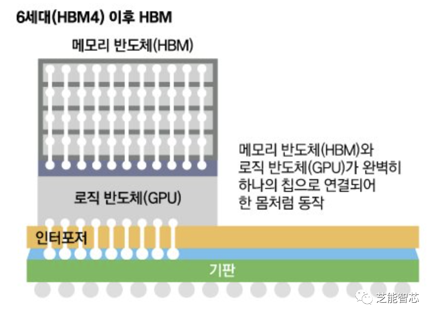 尤其是HBM4有望成为迄今为止完全不同于传统半导体的概念,SK海力士计划从HBM4开始,将内存半导体和逻辑半导体同时实现在同一芯片(Die)上。已经确定了发展方向,并正在推动具体的商业模式。这将是半导体发展史上首次实现逻辑半导体(GPU)和内存半导体(HBM)完全结合,成为一个‘系统集成半导体’。