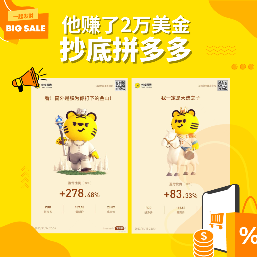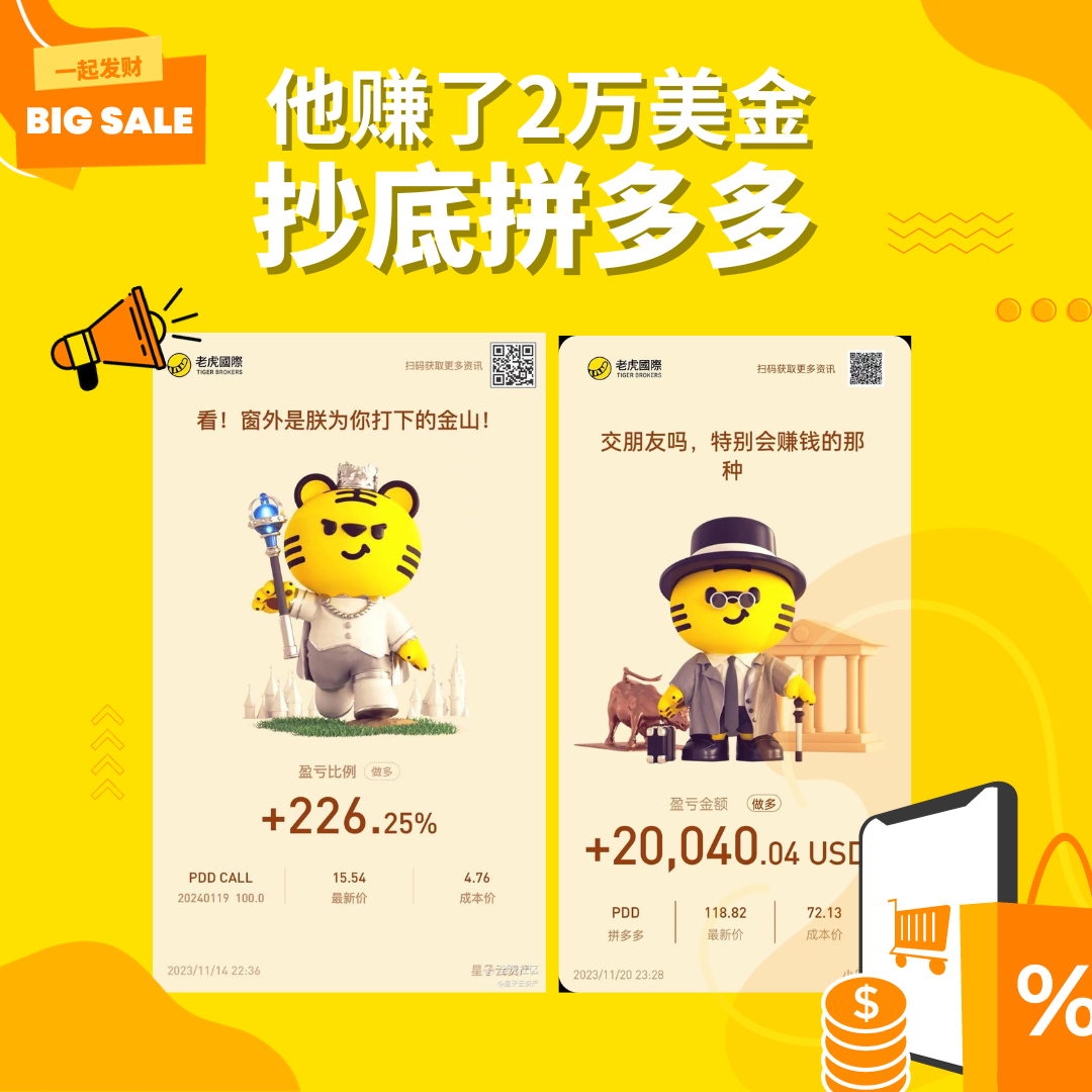 【一起发财】拼多多股价飙升,虎友大赚2万美金!投资秘笈大公开!