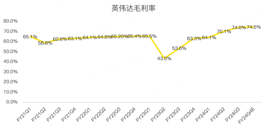 而且,不要忘了,AI GPU的盈利能力更强,如三季度英伟达毛利率高达74%,创下历史新高,而且预计四季度毛利率仍将突破记录,达到74.5%: