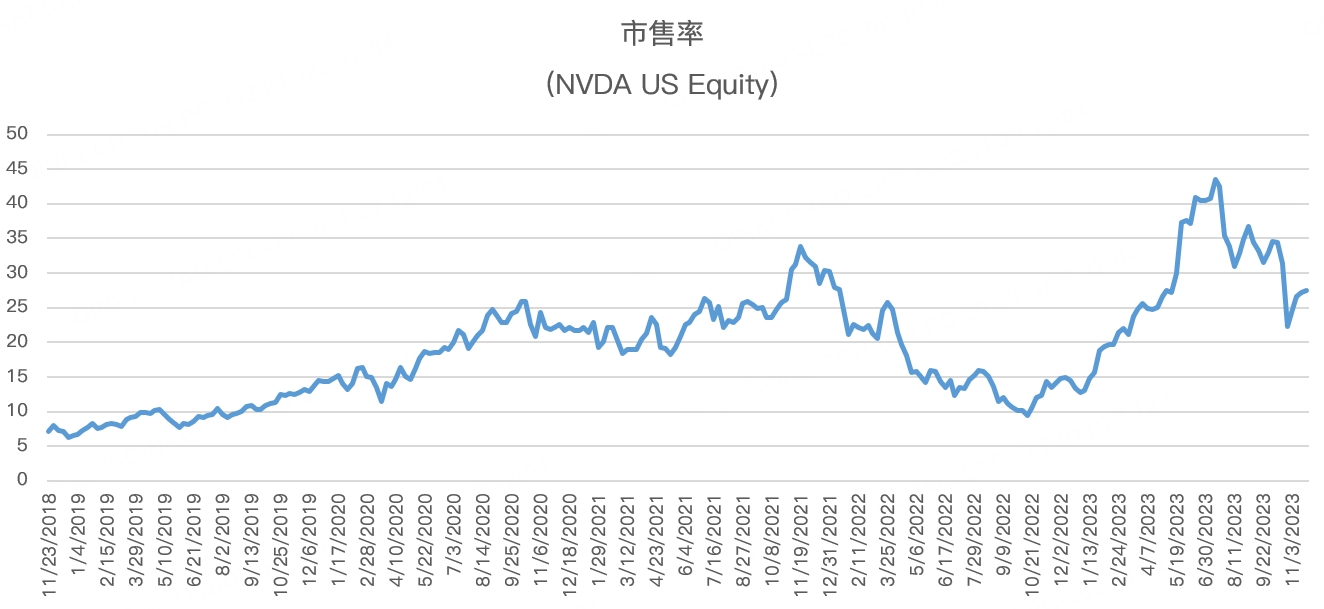 但是从估值上看,如果拿2024自然年计算,英伟达的年营收有望达到834亿美元(当前彭博分析师预期中值),因此,远期市销率只有14.7倍,这在英伟达最近5年的历史中,算是低位: