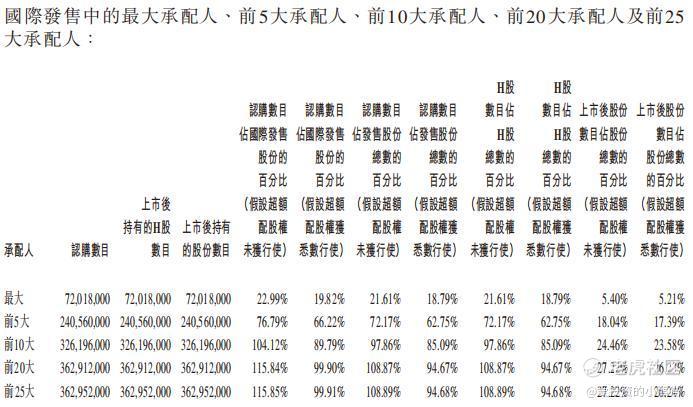 前20大承配人362912000-前10大承配人326196000=36716000股,平均每个人36716000/10=3671600股,每股2.18港元,大约是在8004万的货,从第10大承配人到第20大承配人,这个就基本上人均1836手。