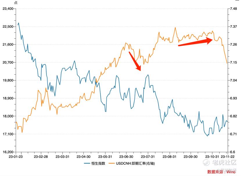 受联系汇率制度影响,港股本质上乃是“以美元计价资产”(港币可视为美元的“代币”),因此离岸人民币汇率就成了决定港股资产价格的重要因素,简单来说,当离岸人民币升值,香港金融市场会置换出大量港币(或者美元),流动性得到极大改善,以此刺激资本市场尤其是快手为代表的成长股的表现,相反,若离岸人民币贬值,市场便会回收港币(或美元),资本市场则表现为利空。