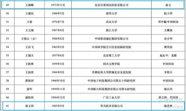 虽然最终没有进入工程院院士名单,但百度王海峰、华为徐文伟在技术研发领域也获得了一些突破。