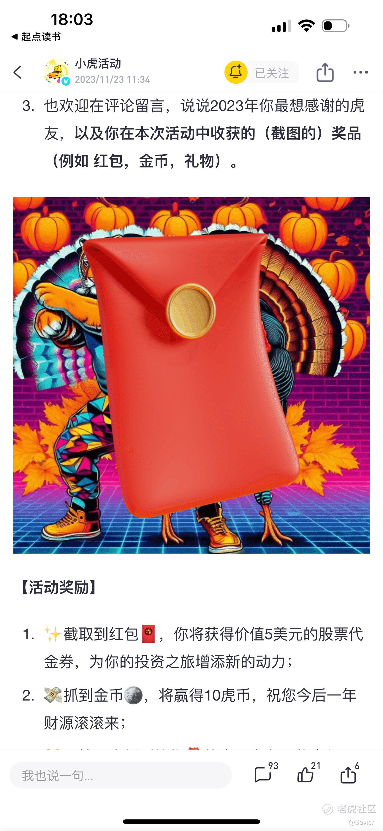 抓到红包啦,祝老虎越来越好,活动多多