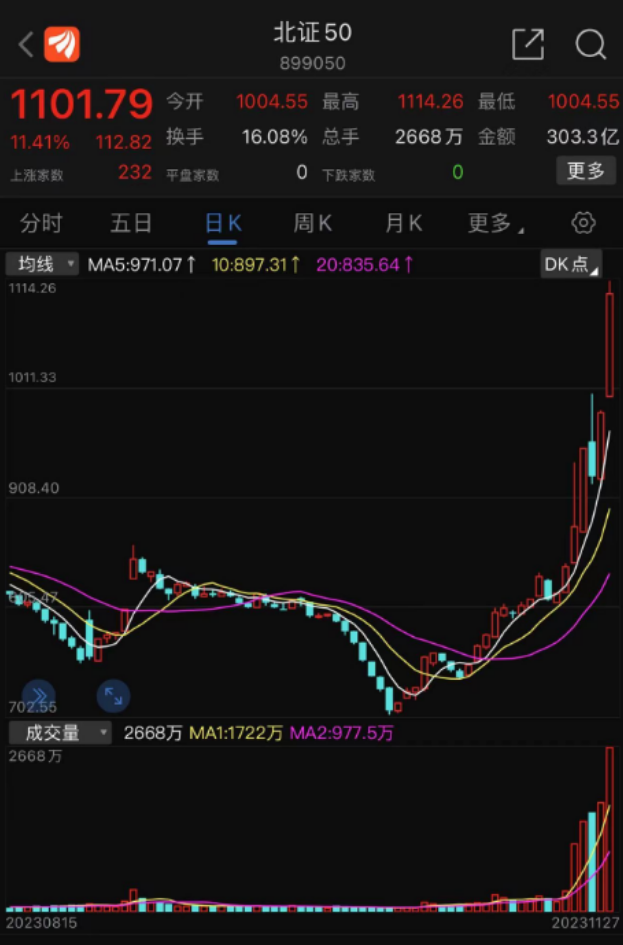 你说A股没钱吧,结果每天还是8000亿以上成交额。你说A股不活跃吧,结果北证50最近这么涨,也是无敌。