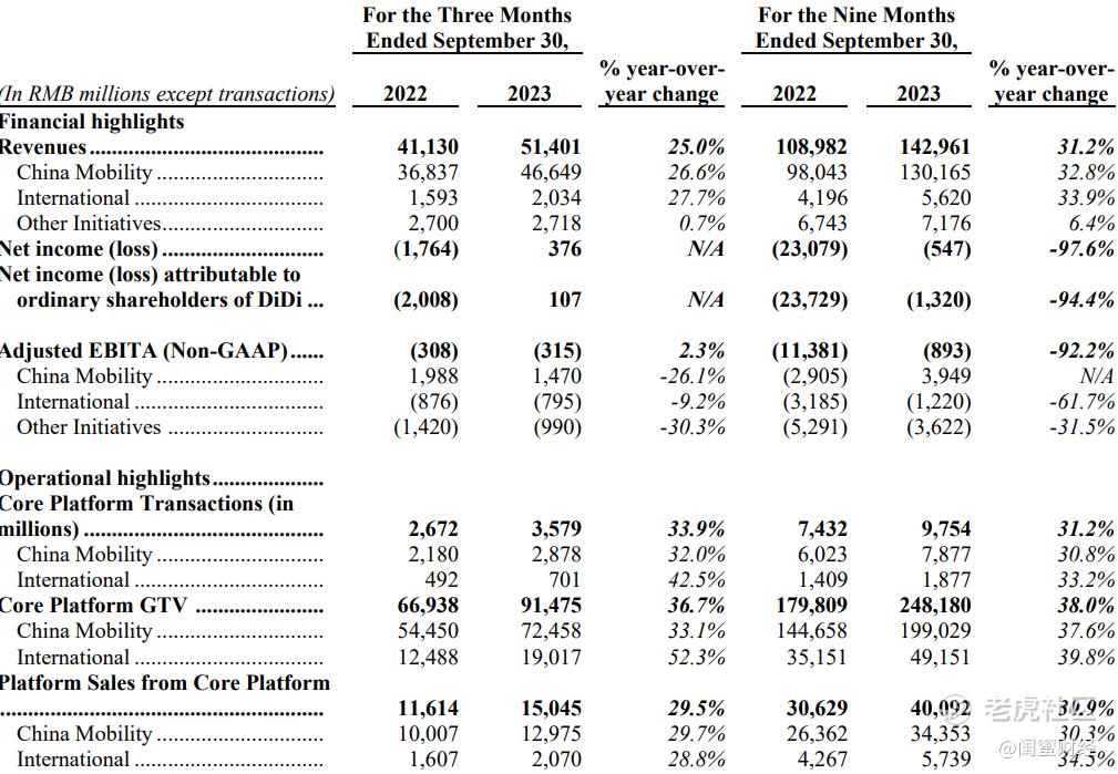 此前的第二季度,滴滴也是增收不增利:总营收同比增长52.6%,但归属普通股股东的净亏损2.67亿元;第一季度情况差不多,营收同比增长19.1%,同期净亏损9.18亿元。蜜妹简单算了下,今年前三季度滴滴的累计亏损大概在14.85亿元左右。