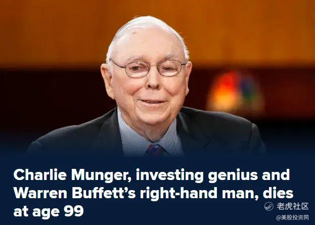 亿万富翁查理-芒格(Charlie Munger),股神巴菲特的得力助手,在今天早上在加州的一家医院中安详去世。