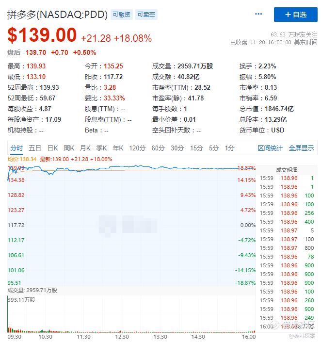 拼多多刷新Q3财报纪录,大涨18%股价直逼阿里