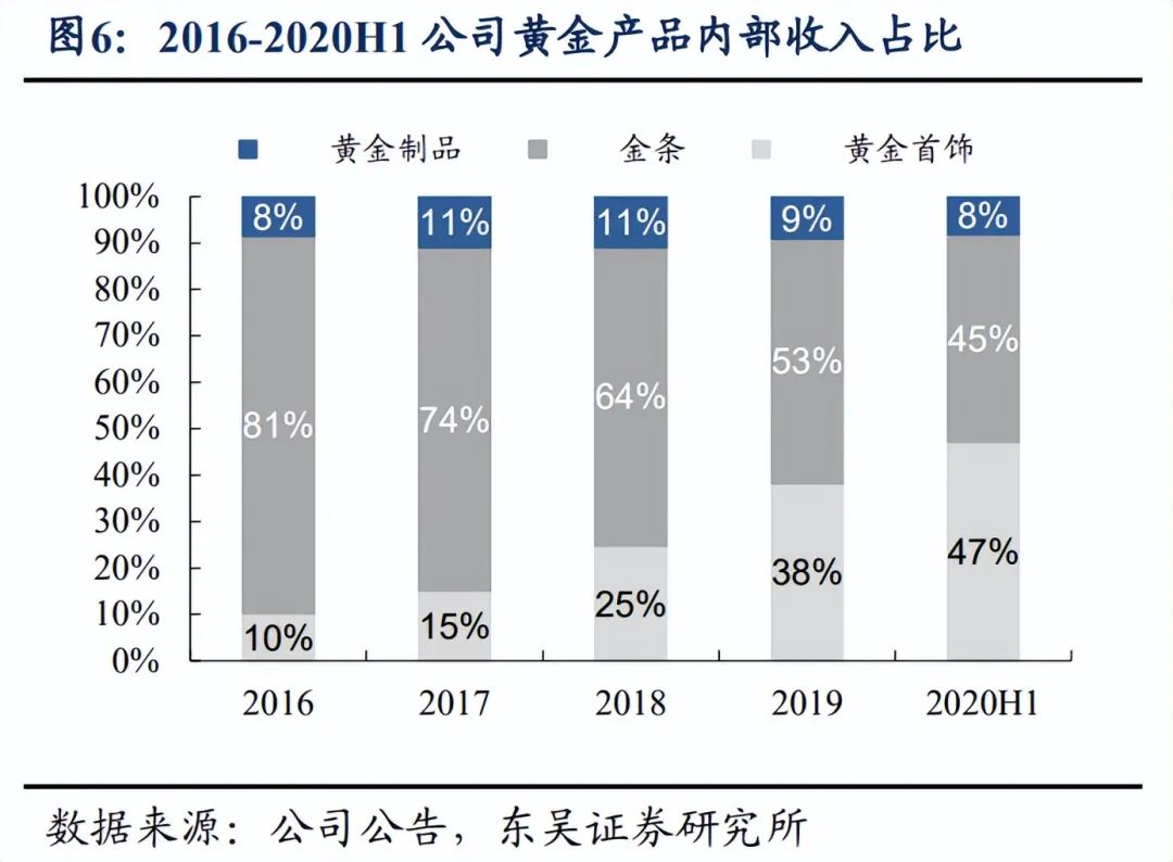 根据东吴证券研报,中国黄金的产品主要由投资属性较强的金条和消费属性较强的黄金首饰构成,其中投资金条为中国黄金传统优势业务,而投资金条毛利率相比黄金首饰还要略低一些。