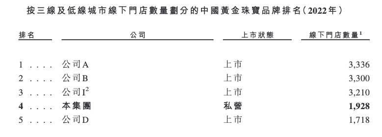 2022年末,梦金园在国内三线及低线城市共拥有1928家线下门店,在中国黄金珠宝品牌中排名第四,前三名分别有3336家、3300家、3210家。