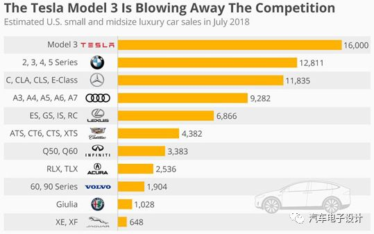 从7月份的销量来看,特斯拉也在从其他小型和中型豪华车的燃油车那里抢走了市场份额,在某种程度上也对传统汽车的竞争对手产生了压力,从产品延续的角度来看,达到一定品价比的电动汽车,会有很多客户放弃传统的品牌依赖,而做出新的购物决策。