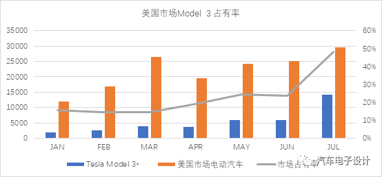 图4 美国市场Model 3新能源汽车市场占有率