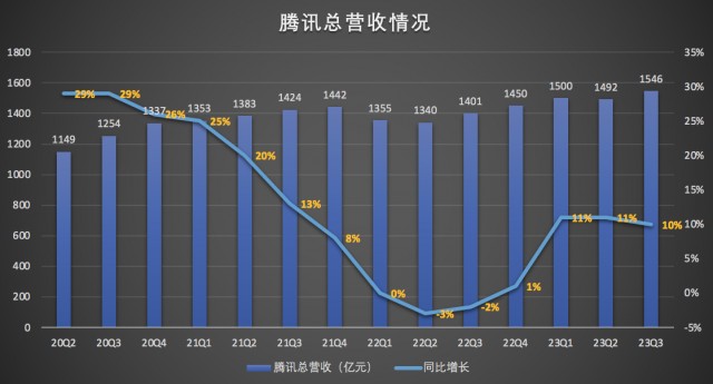 腾讯先前发布的第三季报告显示,实现营收1,546.3亿元,年增10%,净利(Non-IFRS)449.2亿元,年成长达39%,营收占比贡献最高的是金融科技与企业服务收入。