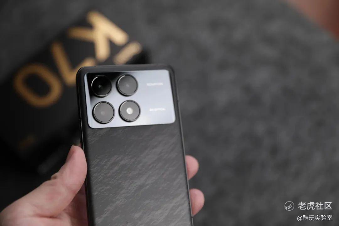 当然,最引人注目的还是摄像模组的Deco,说实话,今年K70的Deco设计,多少有点东西。这种贯穿+悬浮的设计,很难让人联想到这是一台以性价比取胜的机器。三个摄像头和闪光灯,同样被金属圆环箍住,放在这一大片玻璃上,构成了K70 Pro雅致的最后一块拼图。相比米14的方块,个人觉得这个更好看,就是不知道MixFold的用户怎么看