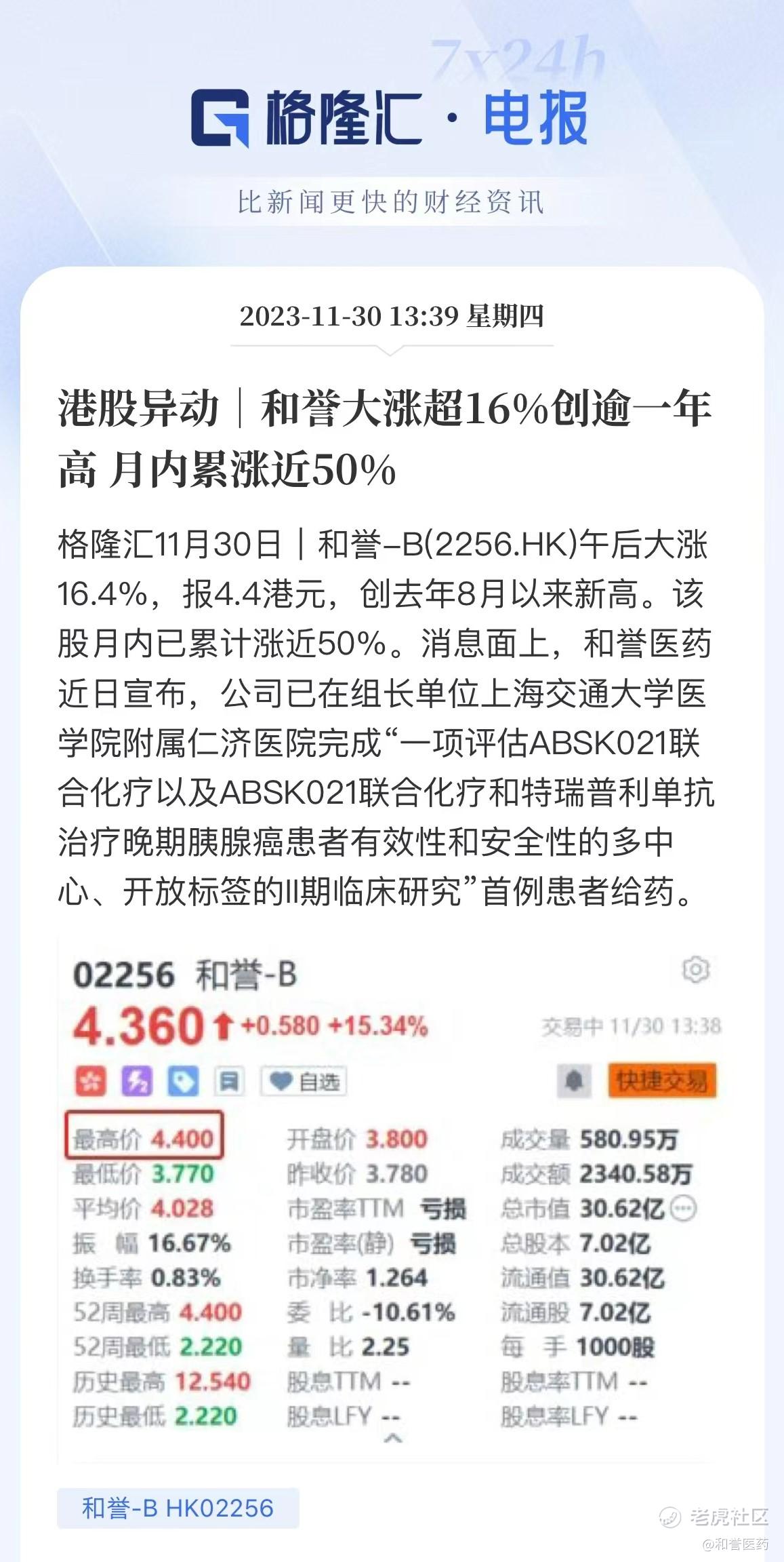 格隆汇:港股异动|和誉大涨超16%创逾一年高 月内累涨近50%