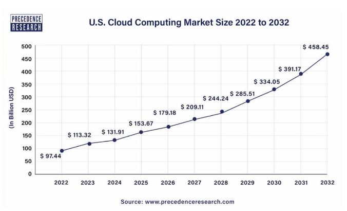 到2022年为止,北美在全球云端运算市场占据了超过41%市占率,美国的云端运算市场规模在2022年达到了974.4亿美元,预计到 2032年将成长至4,584.5亿美元,年复合增长率(CAGR)高达为16.8%,巨大的市场规模和持续增长的趋势都让云端运算领域成为极具吸引力的投资机会。