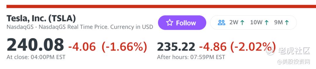 与Cybertruck价格变动同步的是今天特斯拉股价的盘后跌幅达到2.02%。这一股价波动可能受到市场对于Cybertruck价格上涨和续航里程下降的反应所影响。投资者对于产品价格、性能以及市场接受度的担忧可能导致了对特斯拉股票的抛售。