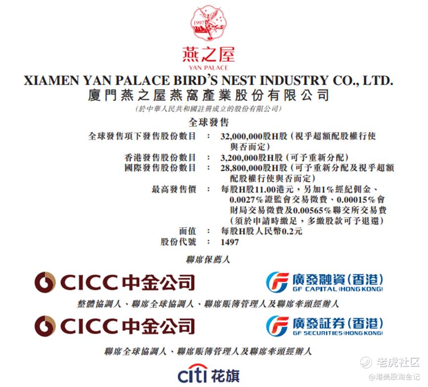 燕之屋于11月30日至12月7日期间进行公开招股,计划发行3200万股股份,其中公开发售部分为320万股,国际发售部分为2880万股。每股发行价定在8.80-11.00港元之间,每手交易为400股,入场费为4444.38港元。预期将于12月12日正式上市。