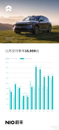 从蔚来披露的数据来看,11月共交付新车15,959台,同比增长12.6%;2023年1-11月,蔚来共交付新车142,026台,同比增长33.1%。蔚来新车已累计交付431,582台。