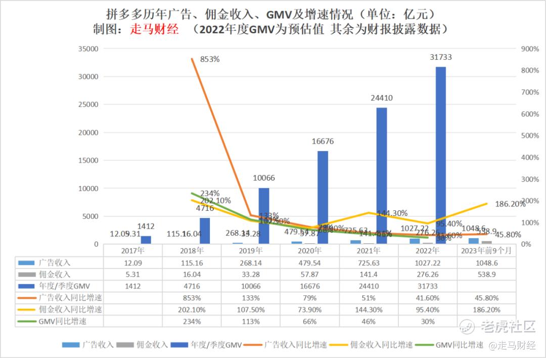 当下的拼多多,要窥见它的国内电商业务的交易规模已经很难,如果一定要找一个相关性最高的数据指标,广告业务营收及增速可能是最有价值的。