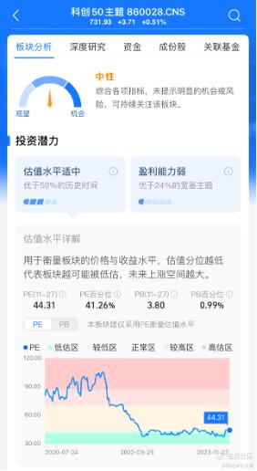 在这方面金选指数基金的设计有点讲究。我深度体验了一把,打开金选指数基金专区,第一眼能看到就是“宽基主题”、“行业板块”这些浅浅的贝塔分类。在不同的赛道下,拿沪深300举例,如果你是研究型选手,可以看指数详情页,查更深的贝塔分析,看看估值水平、盈利能力、板块拥挤度能不能接受,别一把抄在半山腰。
