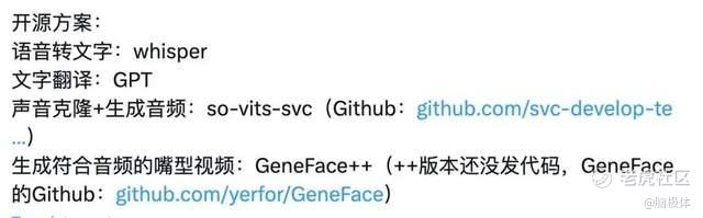 有网友扒出,HeyGen是用Whisper将语音转文字,GPT4(目前未开源)进行文本翻译,声音克隆+生成音频用so-vits-svc,最后用GeneFace++,将翻译后的语音与视频中说话者的嘴唇动作同步。