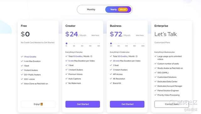 目前,HeyGen收入主要靠C端客户付费。免费版本只支持一个免费的credits字幕,显然仅供玩票,而最低的创作者(Creator)付费档也要24美元/月,对于个人博主来说虽然不算太贵,但随着一大堆同质化产品的价格“内卷”,未来也会面临性价比不高的窘况。