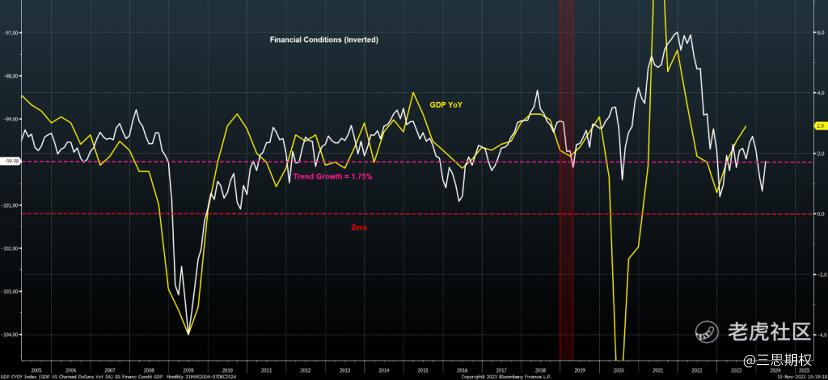 我们曾多次介绍过美国金融条件指数和美国名义经济增长之间的关系,即,金融条件的宽松往往暗示美国的经济走势不会太差。如果直接看图拍脑袋,那么2024年第一季度,美国经济可能真的只会“稍稍”放缓。