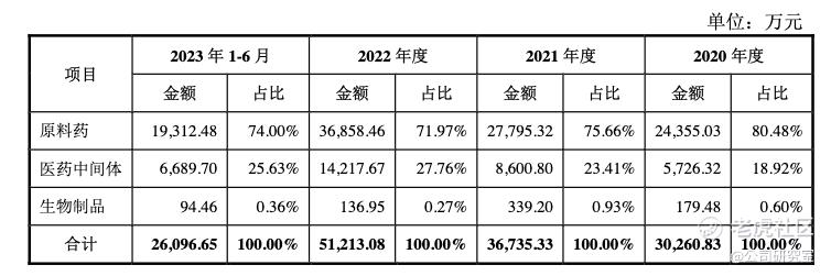 01、主要原料药2022年收入下滑