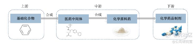 在化学药品产业链中,迪嘉药业处于中游,其上游是生产基础化合物的基础化工公司,其下游是化学药品制剂生产公司。