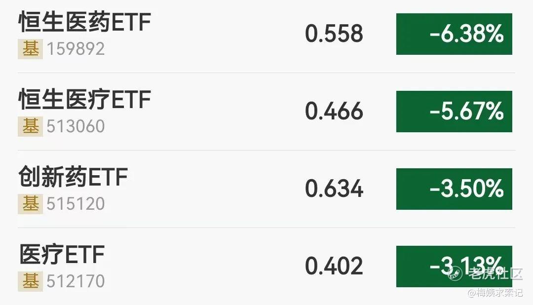 一个就是我们前面所说的,跟踪恒生医疗保健指数的——恒生医疗ETF(513060);另一个是跟踪恒生香港上市生物科技指数的——恒生医药ETF(159892),看名字大家应该也知道了,它是比恒生医疗更侧重制药行业的指数,所以,像今天它的跌幅比恒生医疗也就更大一些,有6%+。
