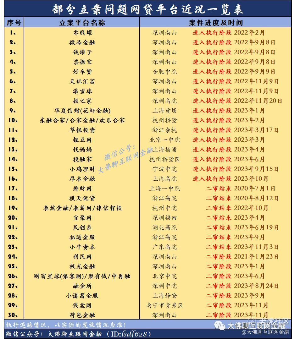 30家二审或进入执行阶段的立案问题网贷平台近况: