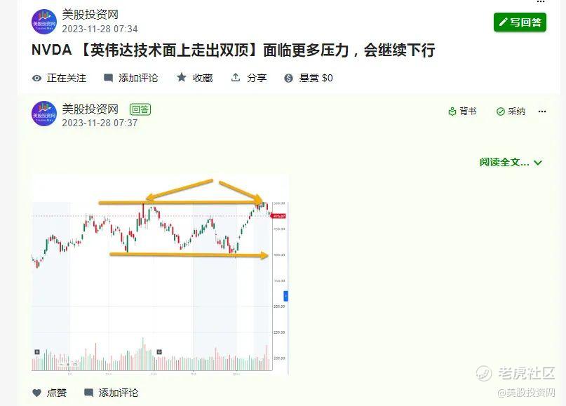 我们在一周前,11月28日就提示过 $英伟达(NVDA)$ 出现双顶,将会回调