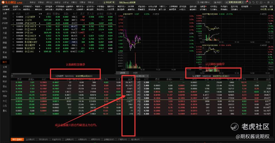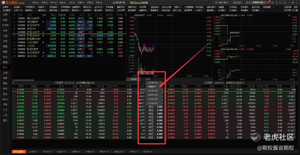 左边为认购期权(买涨)、右边为认沽期权(买跌)