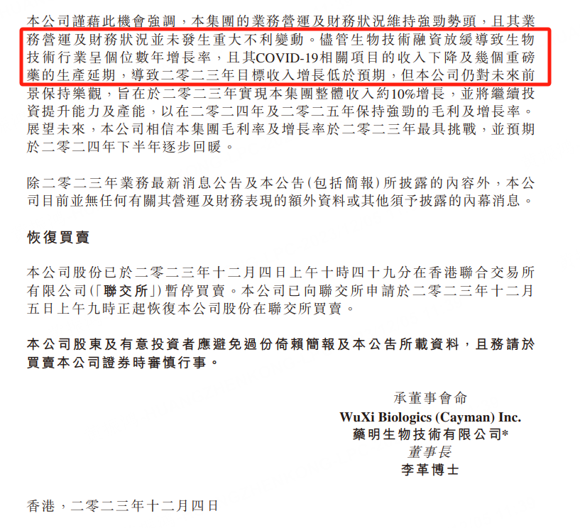 昨天,药明生物在官网更新的业绩展望显示,随着新冠疫情收入的快速下降,公司整体增长(包括新冠疫情高基数)将达不到最初目标。具体来说,主要预期药物开发营收下降18%-20%,生产营收下降15%-18%。[Serious]