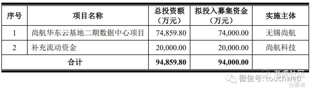 尚航科技计划募资9.4亿元,其中,7.4亿元用于尚航华东云基地二期数据中心项目,2亿元用于补充流动资金。