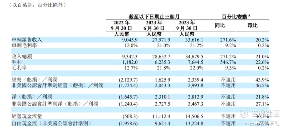 在销量持续增长的带动下,规模效应逐渐凸显,盈利能力、现金流好转,公司也进入了经营正循环。交付规模的高速增长,带动营收大幅提高,而经营效率的持续提高,又带动理想汽车的运营能力、运营效率不断提升,单车成本不断下降,盈利能力也在不断提升。理想三季度实现净利润28.1亿元,已经实现连续四个季度盈利,而且更重要的现金流指标也在快速增长,2023年第一季度自由现金流达到67亿元,第二季度增加到96.2亿元,第三季度则是进一步增加到132.2亿元。现金流快速增长是企业盈利增强的有力指标,比净利润指标要重要,充分说明了企业的造血能力。
