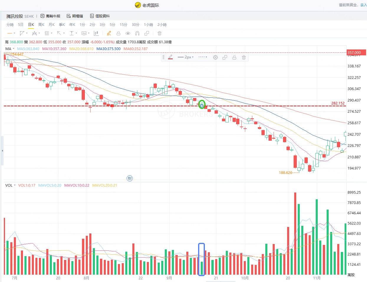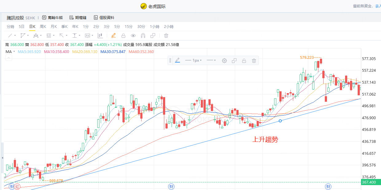 腾讯控股2020年5月到2020年11月处于上升趋势