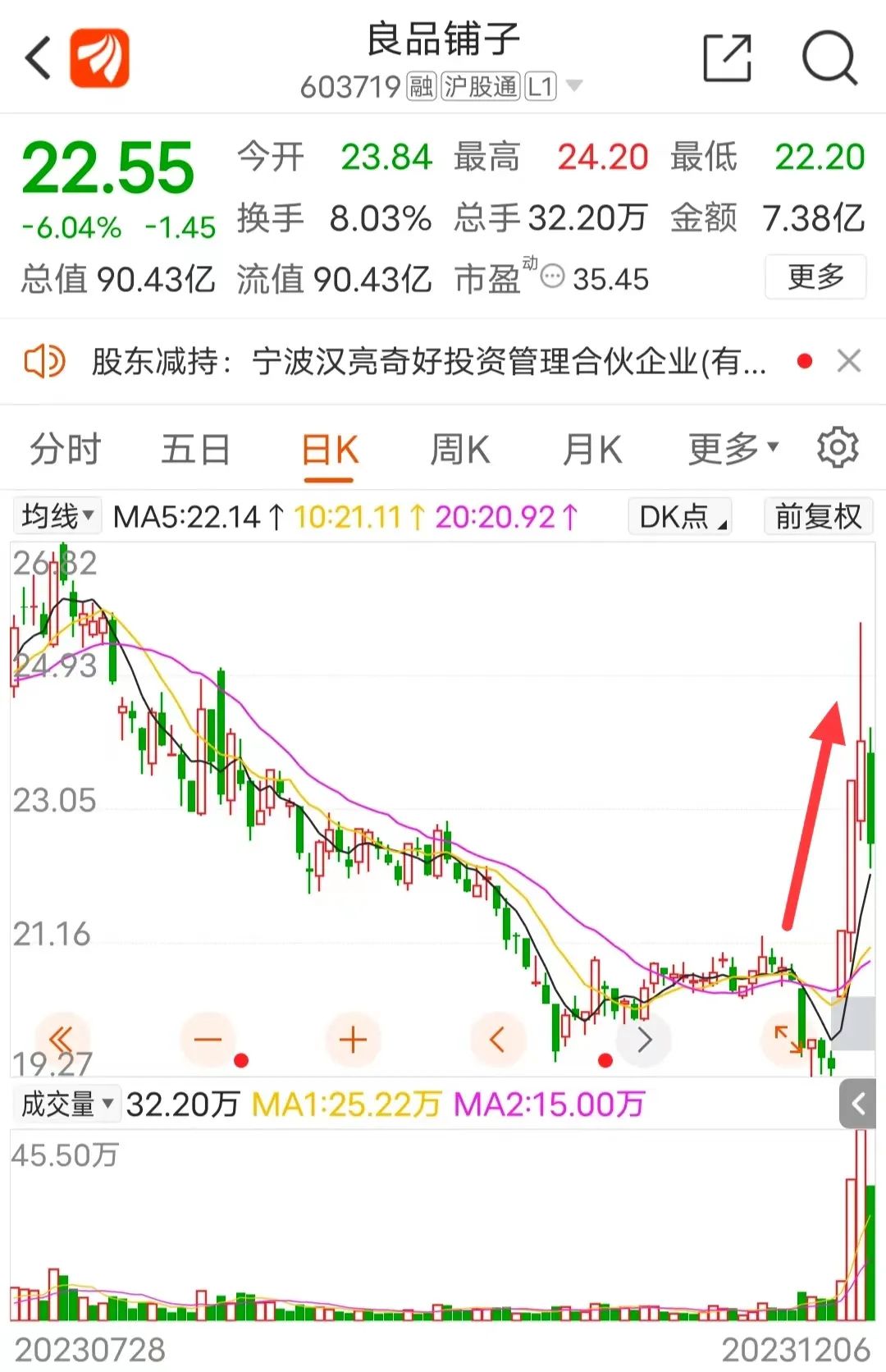 上周,良品铺子新帅杨银芬刚刚上任,就向行业扔出一枚“深水炸弹”,实施公司17年来最大规模降价,门店在售300余款产品会员价平均降价22%,最高降幅45%。或受该消息刺激,良品铺子一度收出两个连续涨停,三日涨幅则达到22%,不过12月6日公司股价回调超过6%,目前最新市值约90亿。
