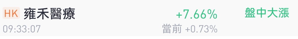 港股面上,今日港股 $药师帮(09885)$ 盘中已经大涨23%, $雍禾医疗(02279)$ 上涨7%。