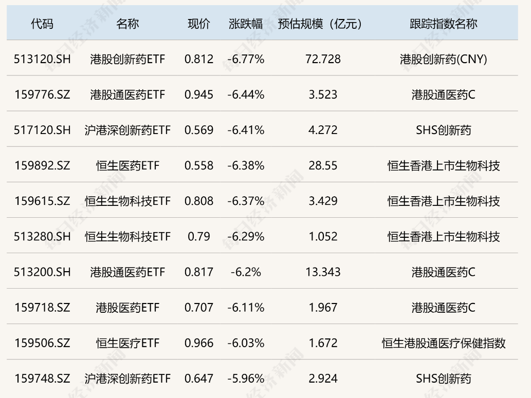 其中 $港股创新药ETF(513120)$ , $港股通医药ETF(513200)$ ,恒生医药ETF, $恒生生物科技ETF(513280)$ 均下跌近7%![Put]